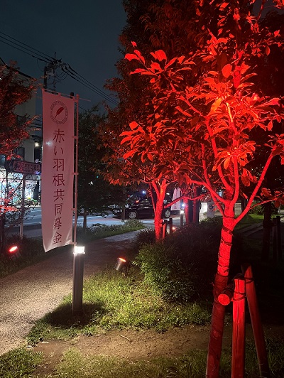 市民の皆様に募金の協力を呼び掛けるため、新座市役所にもご協力をいただき、新座市役所本庁舎周辺を赤い羽根カラーでライトアップいたします。